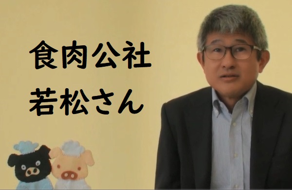 ⑥給食指導資料動画「給食チャンネル」に出演していただいた食肉公社若松さん。鉄人給食をともに盛り上げていただいています。