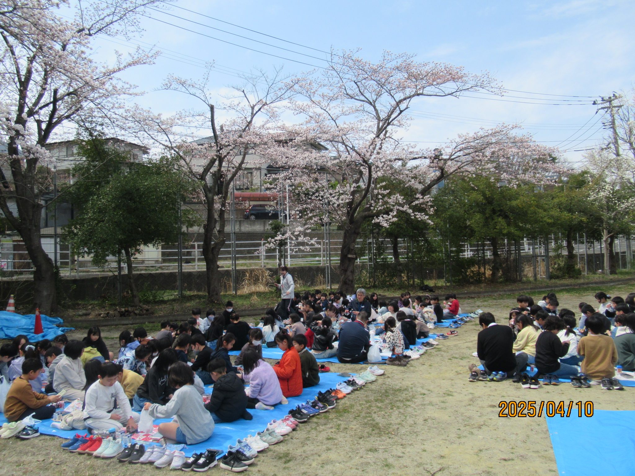 ⑩お花見給食。給食室特製弁当を持って校庭へ。天気にも恵まれ、楽しい学期始まり。