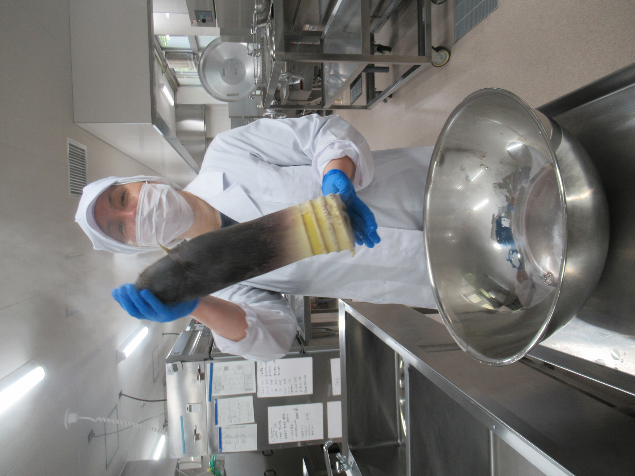 ⑤宮城県愛島特産 孟宗竹の大きな筍、ゆでたてほやほや!これからさらして、たけのこごはんにします。大きくてもやわらかい。