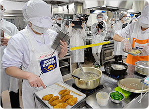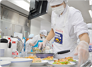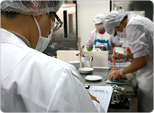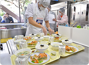 審査に当たりましては、献立の栄養価・バランス、安全安心である衛生上の管理、調理技術、栄養士と調理員のチームワーク、地場産物の活かし方などをポイントにしています。