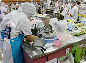 常日頃は最大12,000食を提供している施設もあるが、この決勝大会では、6食分を作るのである。