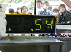 手洗い検査キットで、手洗い後の雑菌のチェックをする。