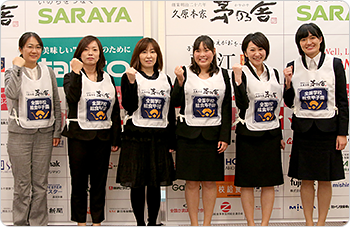 決勝大会ではゼッケンをお土産にもらえるので、忘年会で調理員みんなで着用して写真を撮ったりしました。