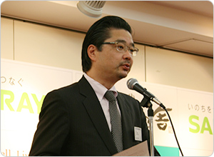 来賓挨拶「学校給食での地場産物の価値を広げる、意義のある大会」