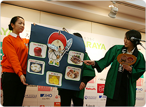 明日もこの会場の皆さまがワクワクするような給食を作って、青森県田子町に興味を持っていただけるよう、地元でセンターを守ってくれている調理員さんを含めて全員で一丸となってがんばりたいと思います」