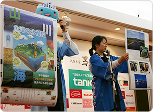 水循環とは、山に降った雨が、川や湧き水となり、農業用水や生活用水に使われ、海に戻る循環のことです。