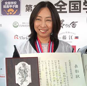 誰にでも喜ばれる給食を作るために、常に最善を尽くそうと、採用されて以来ずっと頑張って参りました。今日、それが報われて優勝することができて、よかったと思います。