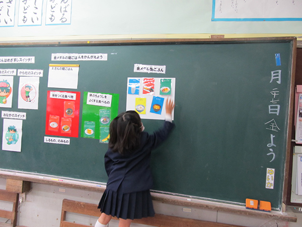 本献立を用いて指導をする際は、地場産食材の紹介、豆についての話を中心に、市が、鹿児島のぶりの養殖発祥の地であることや、生産者紹介も行っています。