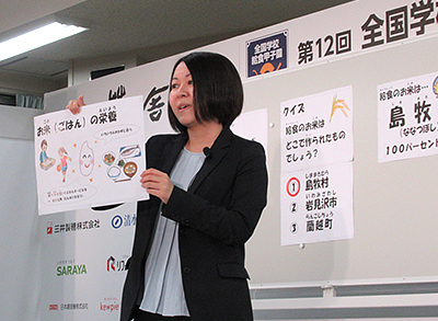 「今日の給食どうだった?うまい、おいしい以外の言葉で教えて」と、笑いを誘うスタート。